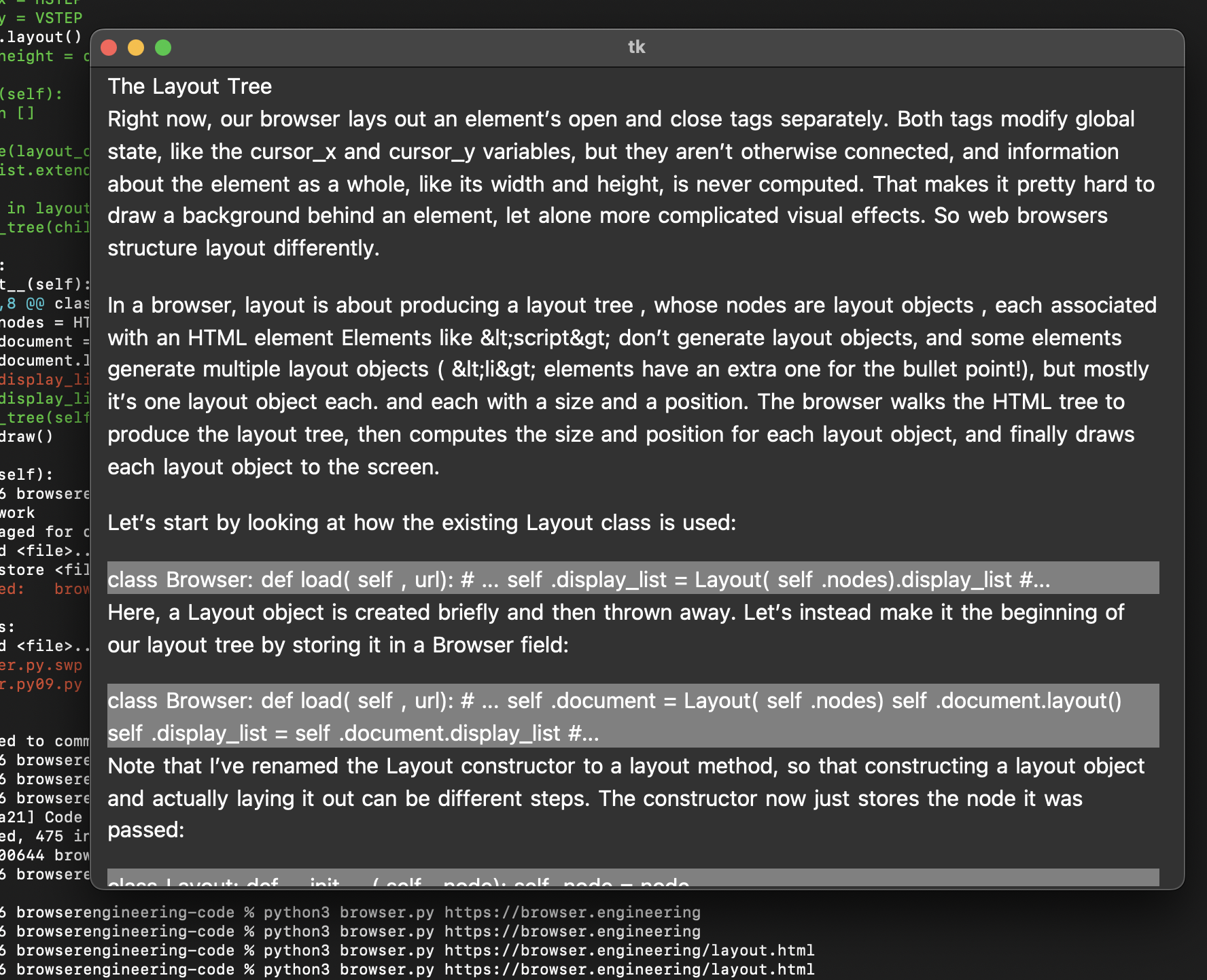 4장에서 만든 Layout 객체를 BlockLayout으로 바꾸고 DocumentLayout을 통해 BlockLayout들을 만들어가는 것이 목표입니다.